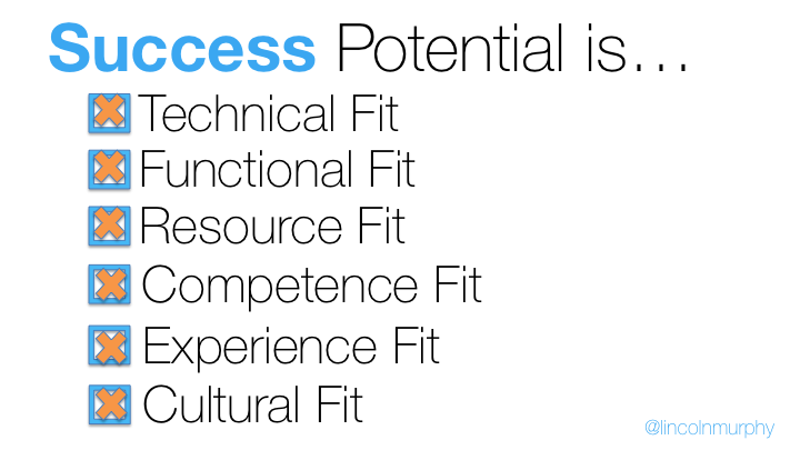 Other “Fits” like Resource or Experience may take more time to uncover, so don’t wait until then to start implementing the Success Potential checklist across your customer experience.